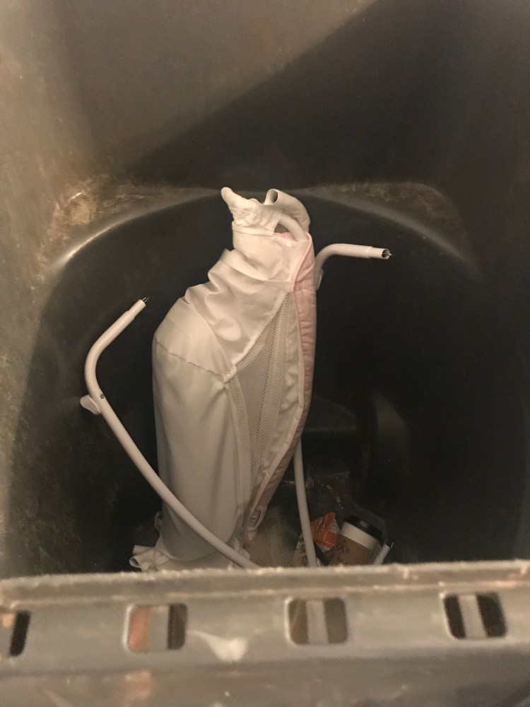 Me: A recall happens when companies have to ask for things back for liability reasons. Babies were dying in these things so they have to take them all back to keep babies safe. We are throwing it away.