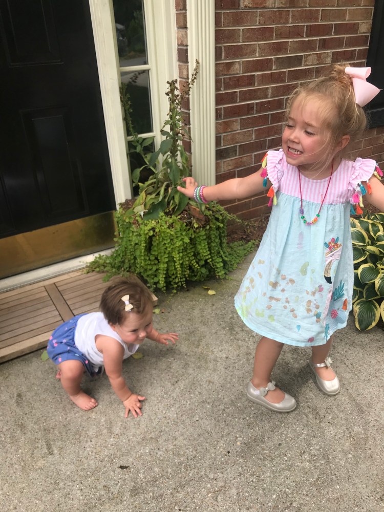 If I’m home, I’m on my own in the mornings to let Justin get a little bit of sleep. We are trying to stay busy with camps and Ramsey is in ISR swim lessons so mornings are a bit more crazy than we are accustomed too at the moment. One crazy day last week, our little alarm clock (Ramsey) slept past 8 so we were a little frantic. I’m nursing Ramsey in a rocking chair (yes. She’s still nursing. I plan to wean at some point before college.) and River was up begging for attention and help putting her clothes on.